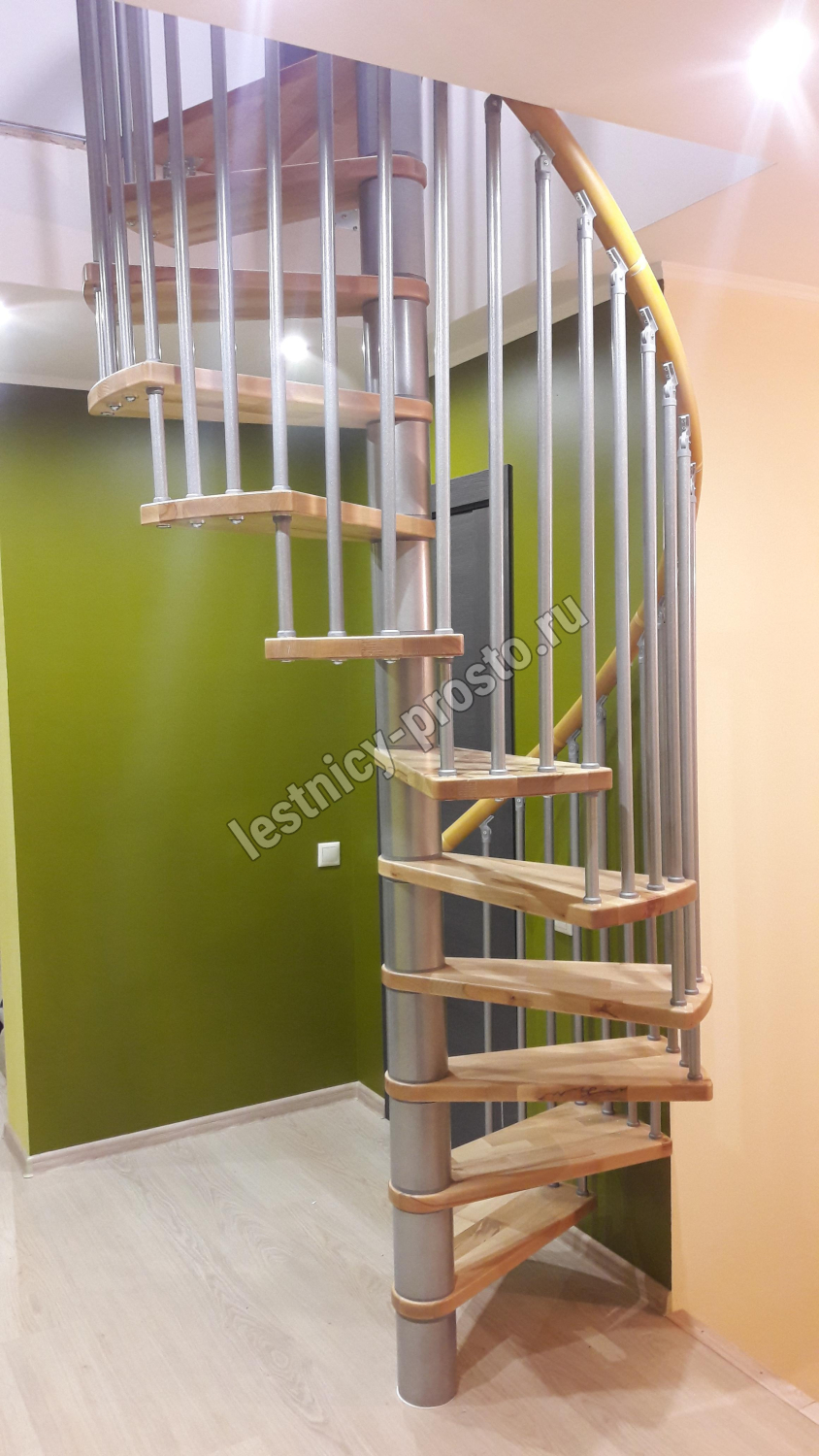 Лестница представлена в двух вариантах: с поворотом направо и с поворотом налево. Благодаря возможности регулировать высоту шага с помощью пластиковых вставок (входят в базовый комплект), высоту лестницы можно варьировать в пределах от 2860 до 3090 мм. Кроме того, купив дополнительную секцию для этой лестницы, можно поднять высоту до 3320 мм. Поручень изготовлен из массива бука в тон ступеням. Ступени и поручень покрыты износостойким защитным лаком.