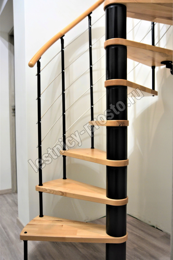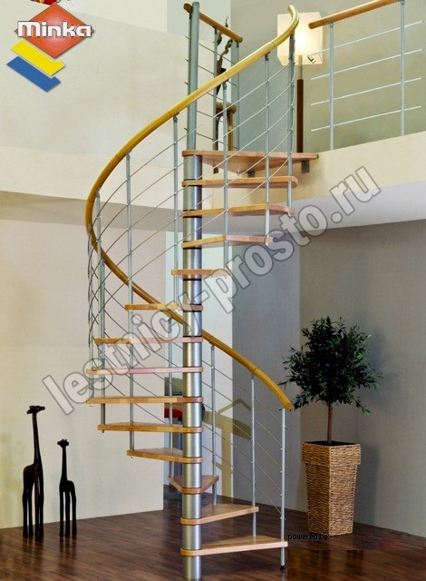 Cтупени и поручень изготовлены из массива дерева и покрыты специальным лаком от компании Минка, который предотвращает царапины, сколы или стирание поверхности при интенсивном использовании лестницы. Благодаря возможности регулировать высоту шага с помощью пластиковых вставок (входят в базовый комплект), высоту лестницы можно варьировать в пределах от 2860 до 3090 мм. Кроме того, купив дополнительную секцию для этой лестницы, можно поднять высоту до 3320 мм.
