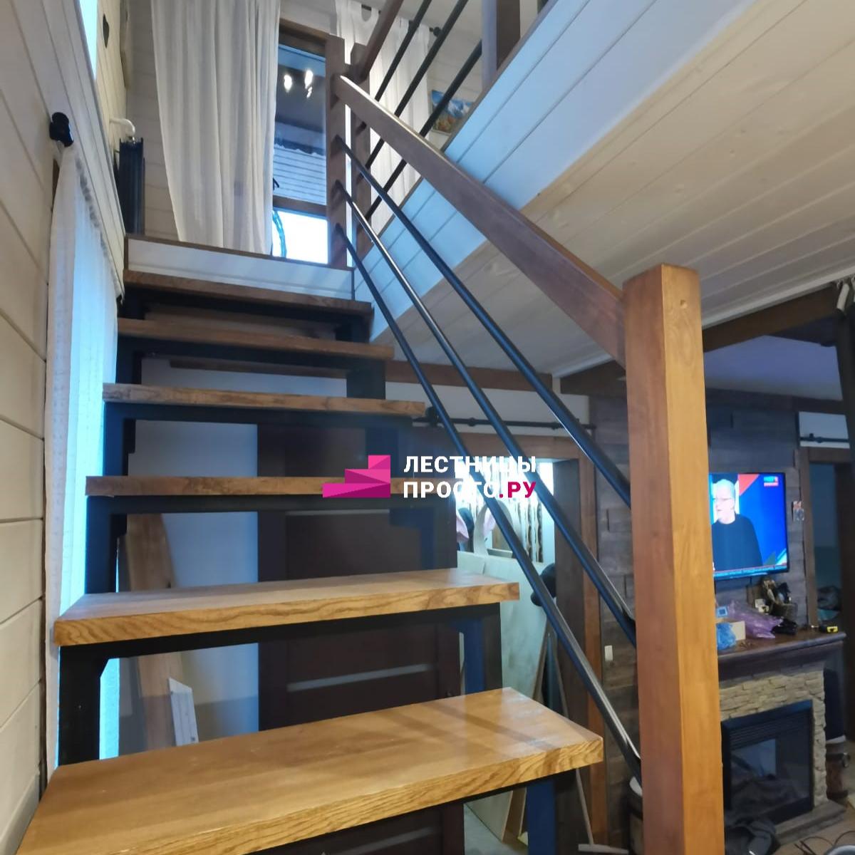 Лестница на центральном каркасе г-обр. металлик, ступени лиственница, LP-151021